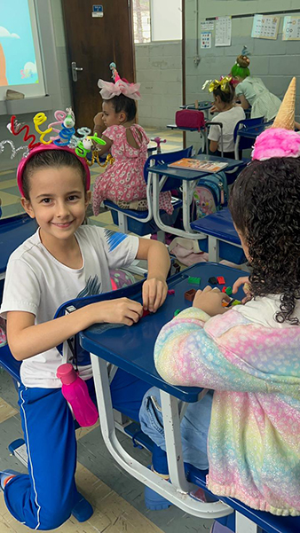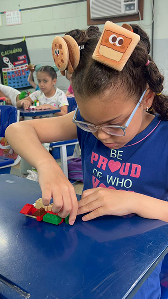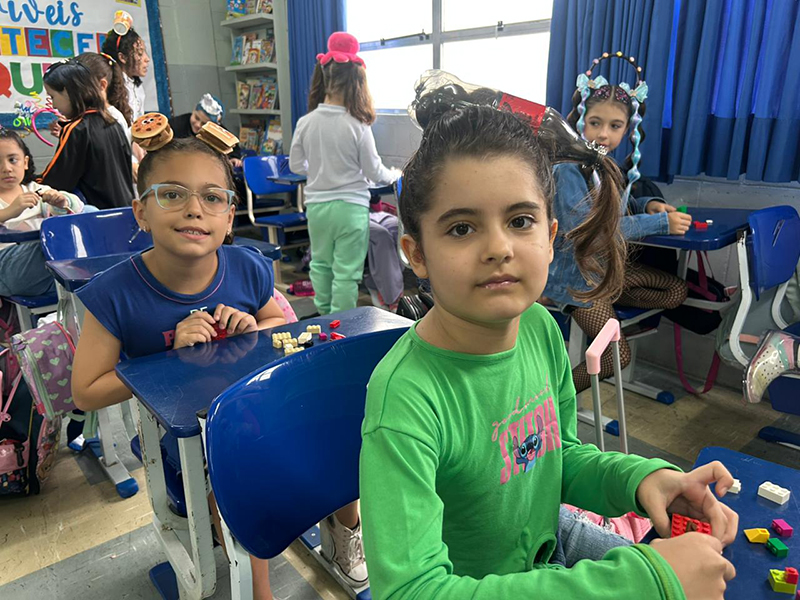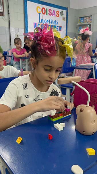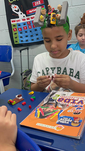 Ainda sobre a Semana da Criança, a teacher Rebeca preparou uma aula especial e diferente para os alunos do 2º, 3º e 4º ano. Utilizando blocos de LEGO, as turminhas fizeram montagens relacionadas a temas já trabalhados em sala de aula.