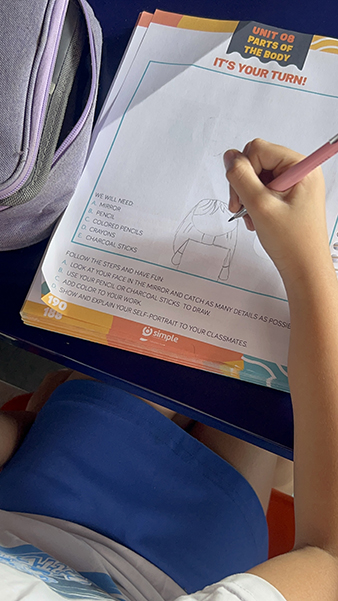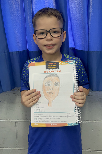 Na aula de inglês com a Teacher Rebeca, os alunos do 2º ano criaram seus autorretratos!
