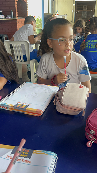 A atividade foi uma oportunidade para trabalharem o vocabulário em inglês e também refletirem sobre algo muito especial: A importância de cada um ser único.