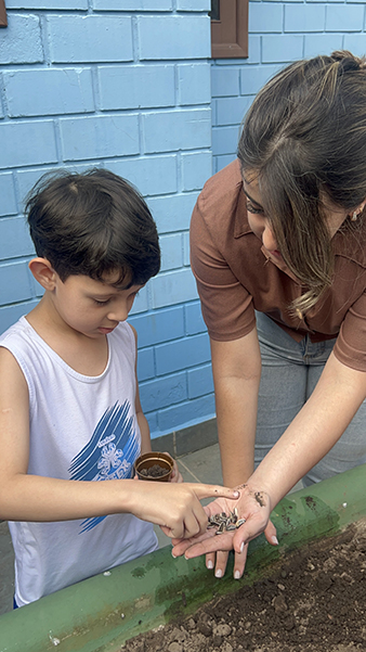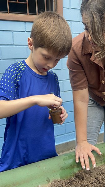 Aprender um novo idioma e seguir as instruções sobre o processo de plantação fica muito mais divertido quando nossos pequenos colocam em prática!