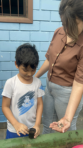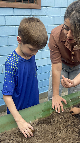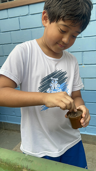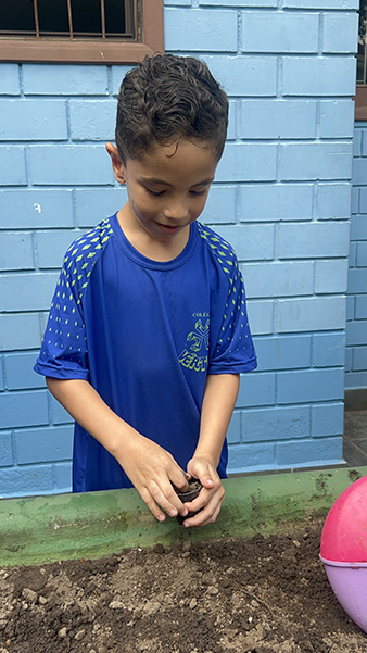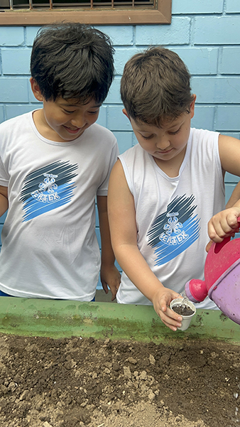 Nossos alunos do 1º ano estão aprendendo e ensinando sobre PLANTING, na aula de inglês com a Teacher Amanda.