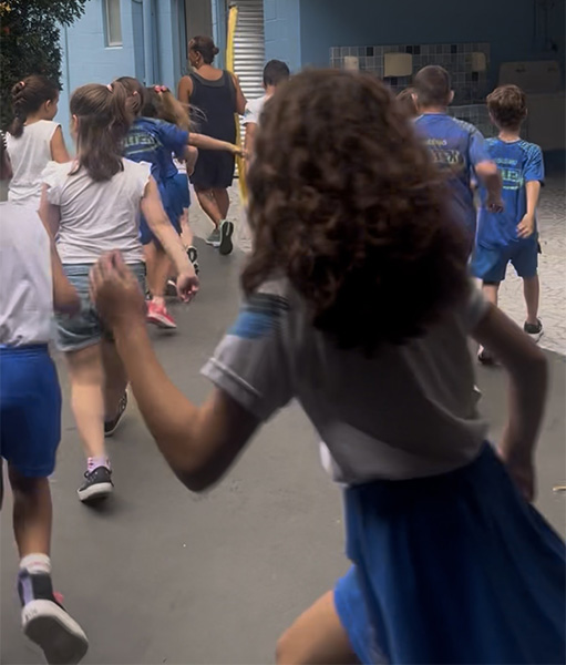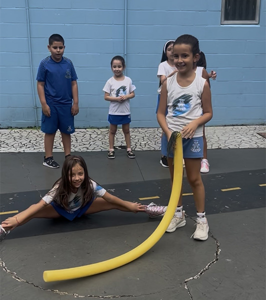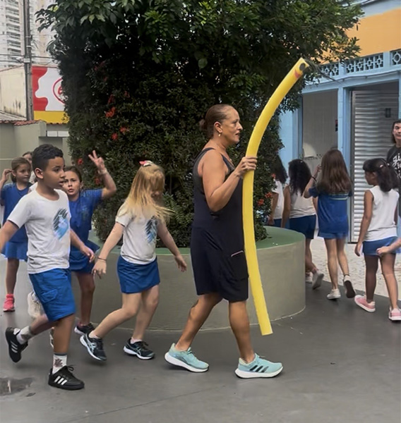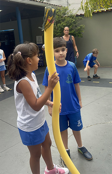 A professora Sandra realizou com a turma do 3º ano a dinâmica “Siga o Espaguete” .