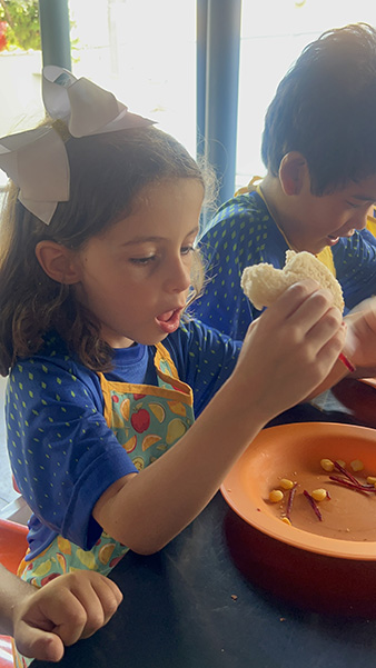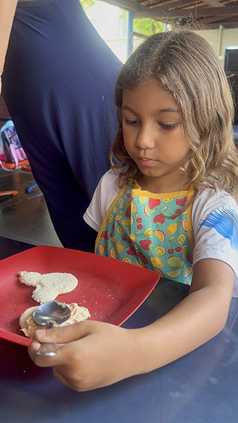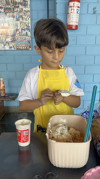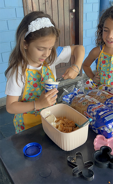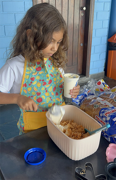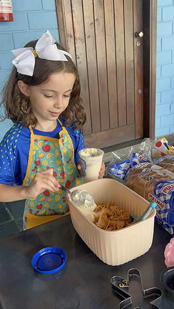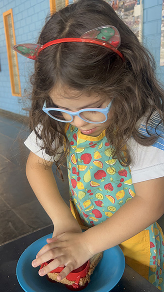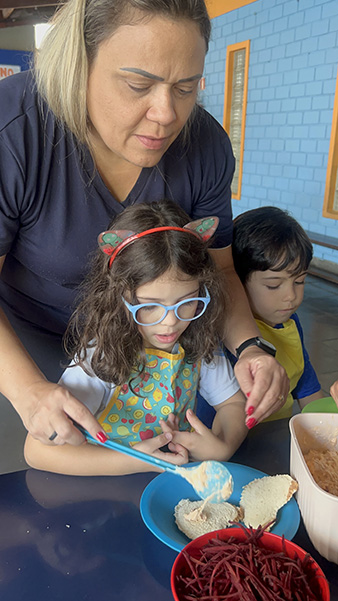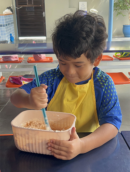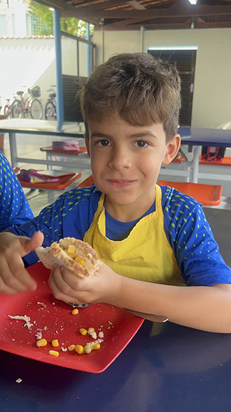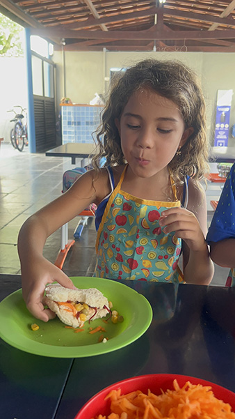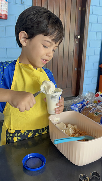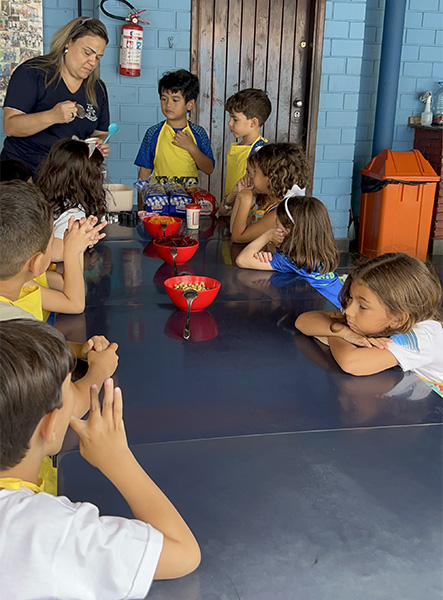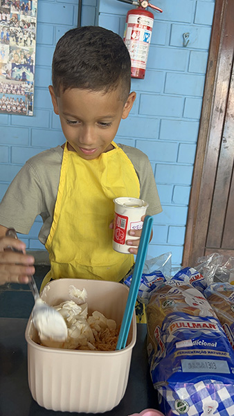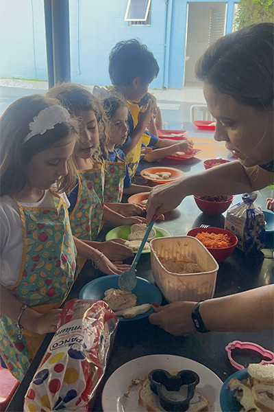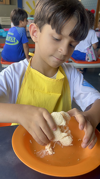Por aqui já começamos colocando a mão na massa! No projeto, os alunos aprendem na prática sobre alimentação saudável, higiene e trabalho em equipe, enquanto descobrem novos sabores e a importância de bons hábitos alimentares.