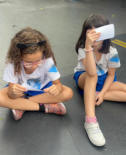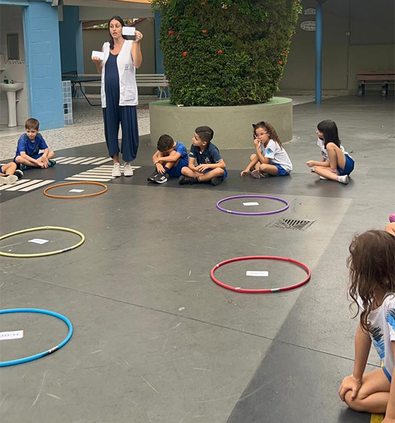 Na aula de História, os alunos do 2º ano da professora Gabriele conheceram a evolução dos instrumentos de medição do tempo, passando pelo relógio de sol, ampulheta, relógio analógico e digital, entendendo suas características e como foram utilizados ao longo da história.